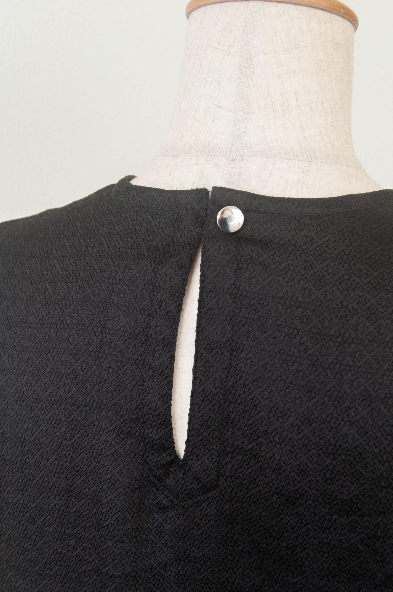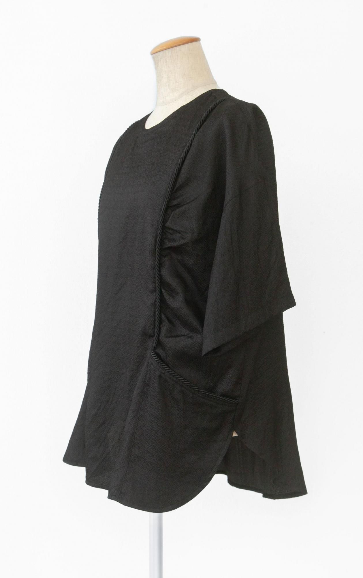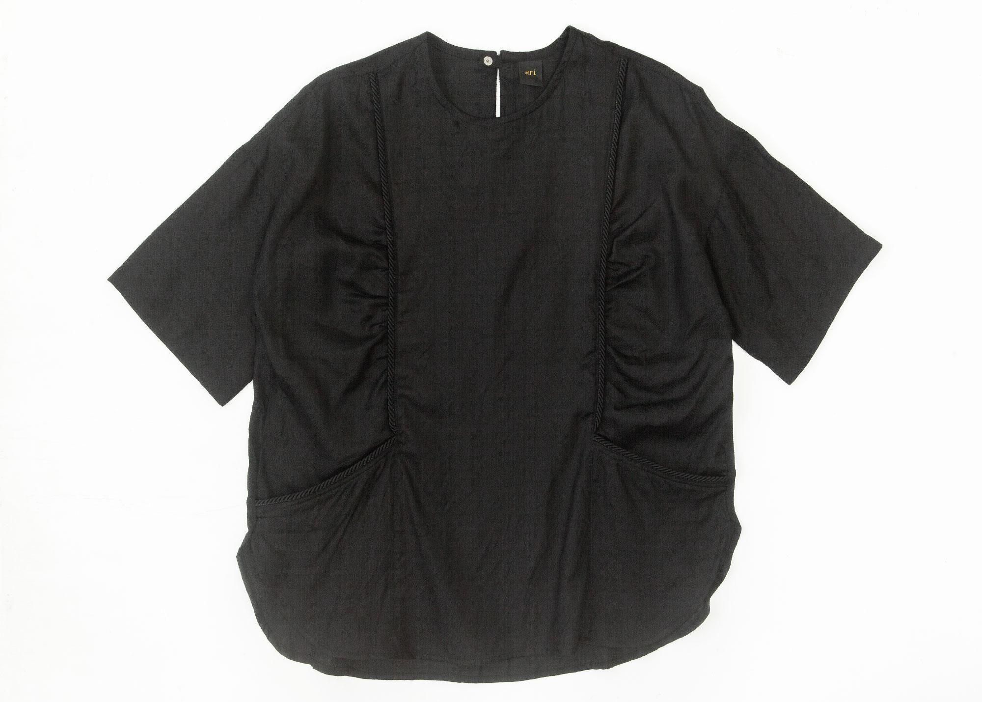 胸元からポケットにかけて入っているギャザーによって、ニュアンスが生まれ、立体感があります。やや大きめの作りになっているので、ゆったりとした着心地。