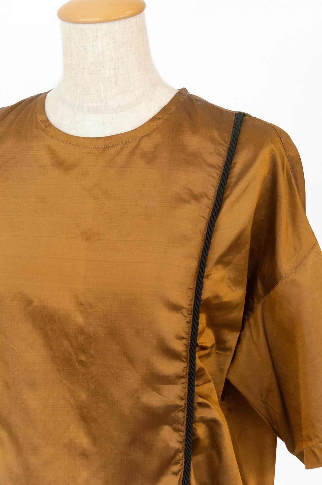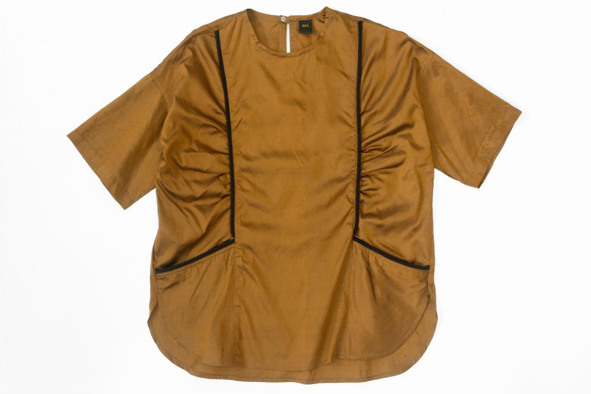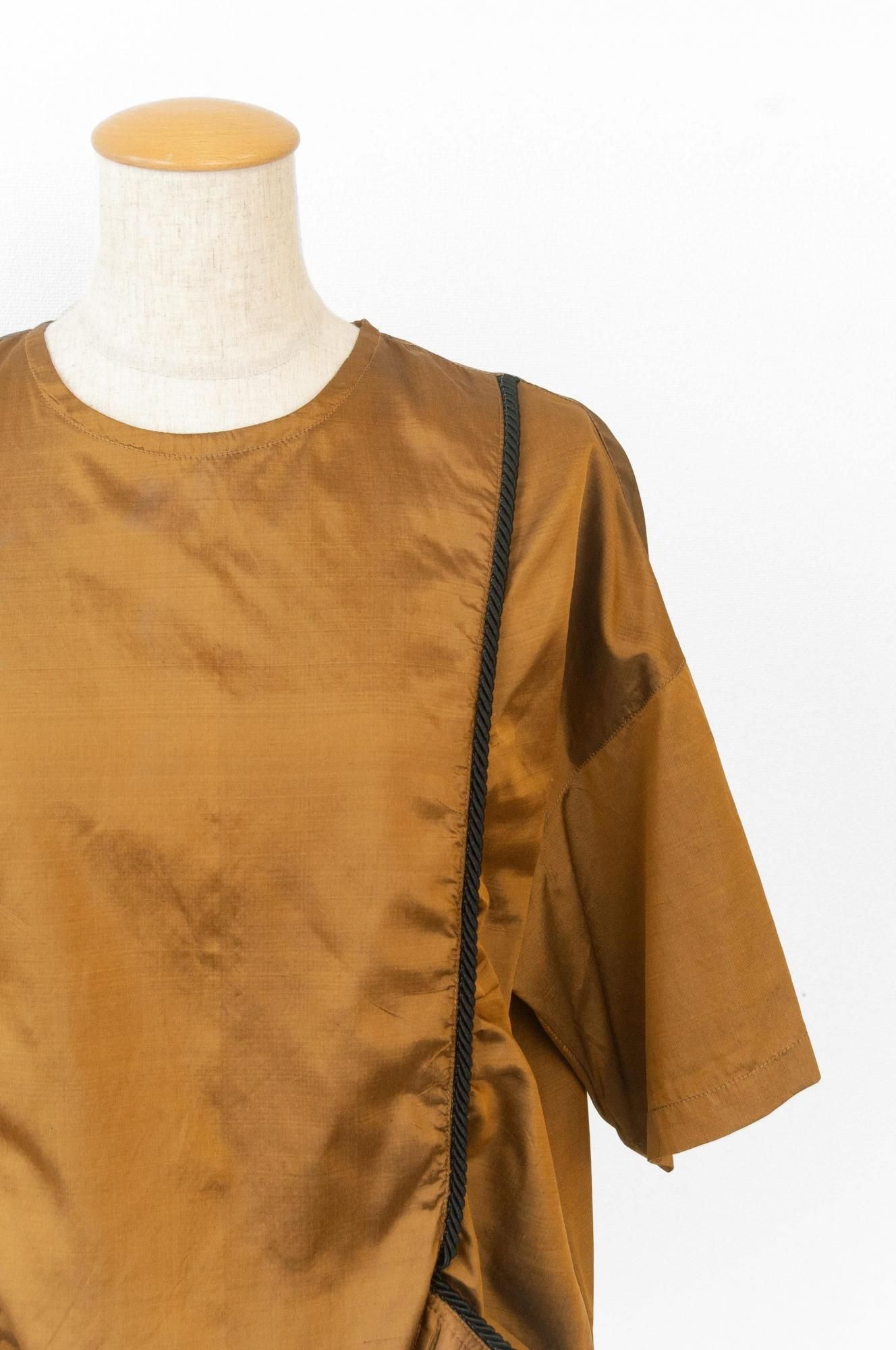 胸元からポケットにかけて入っているギャザーによって、ニュアンスが生まれ、立体感があります。やや大きめの作りになっているので、ゆったりとした着心地。