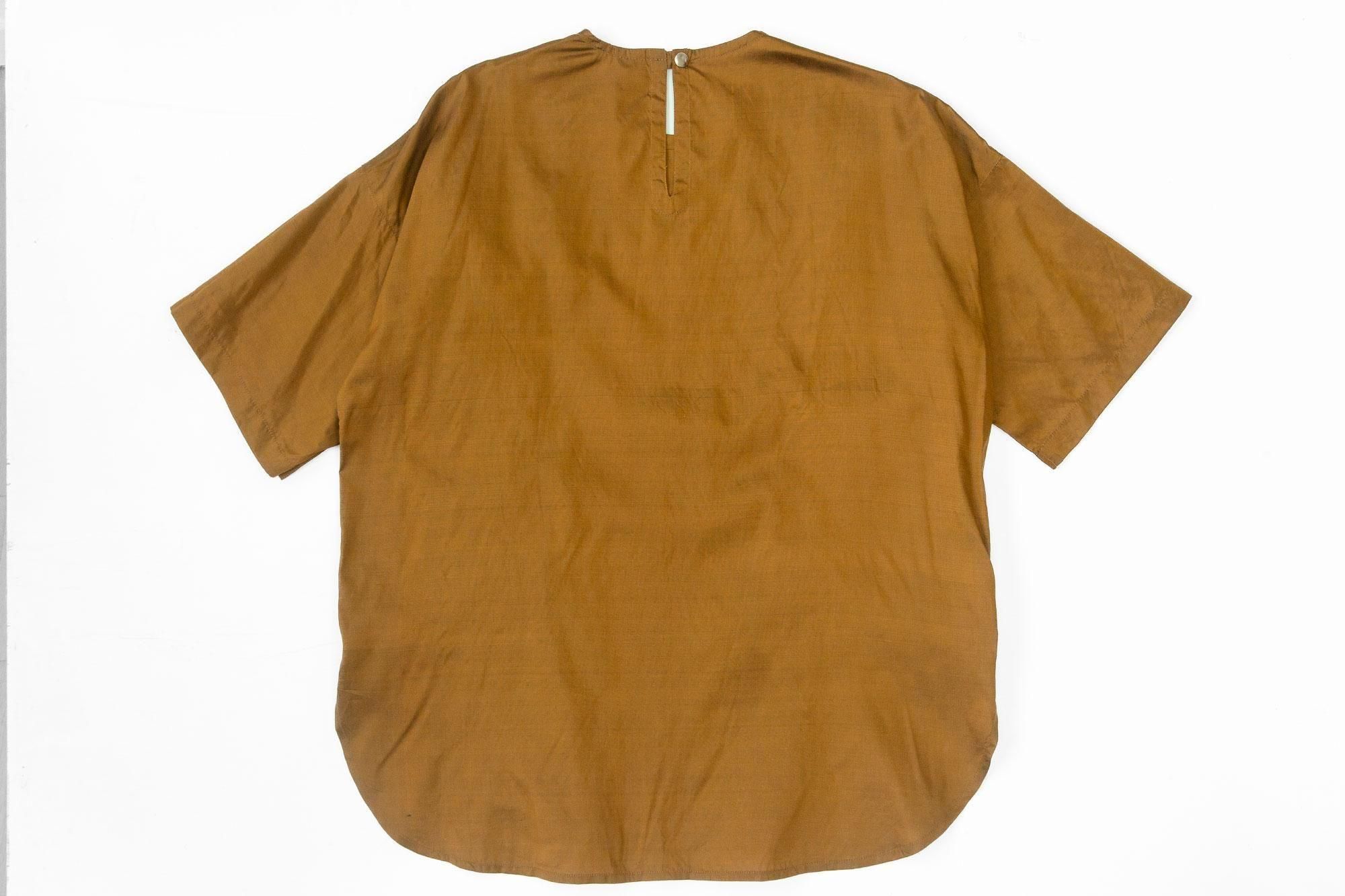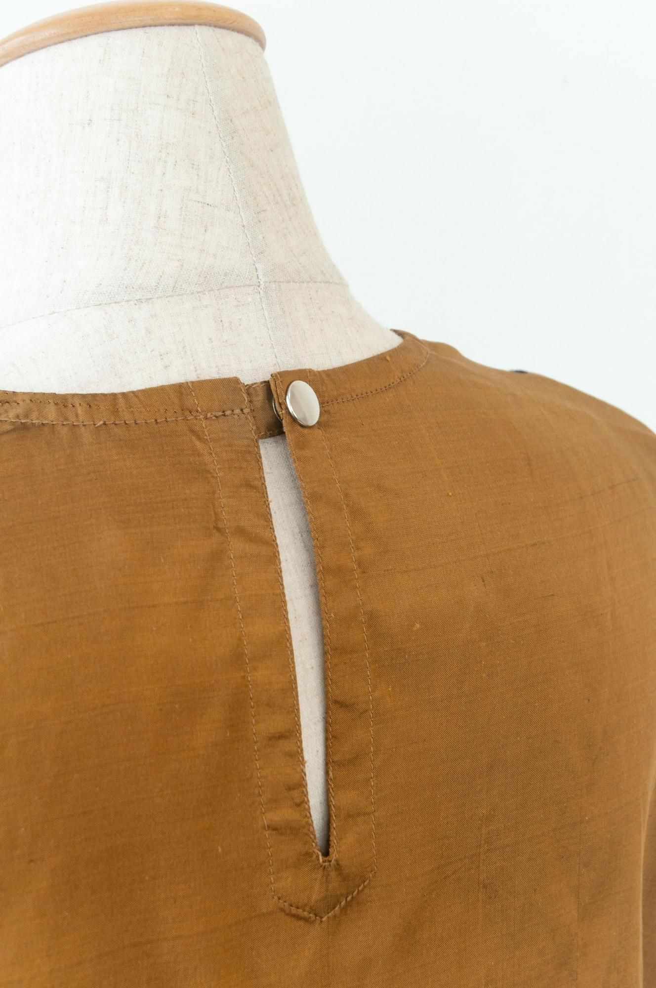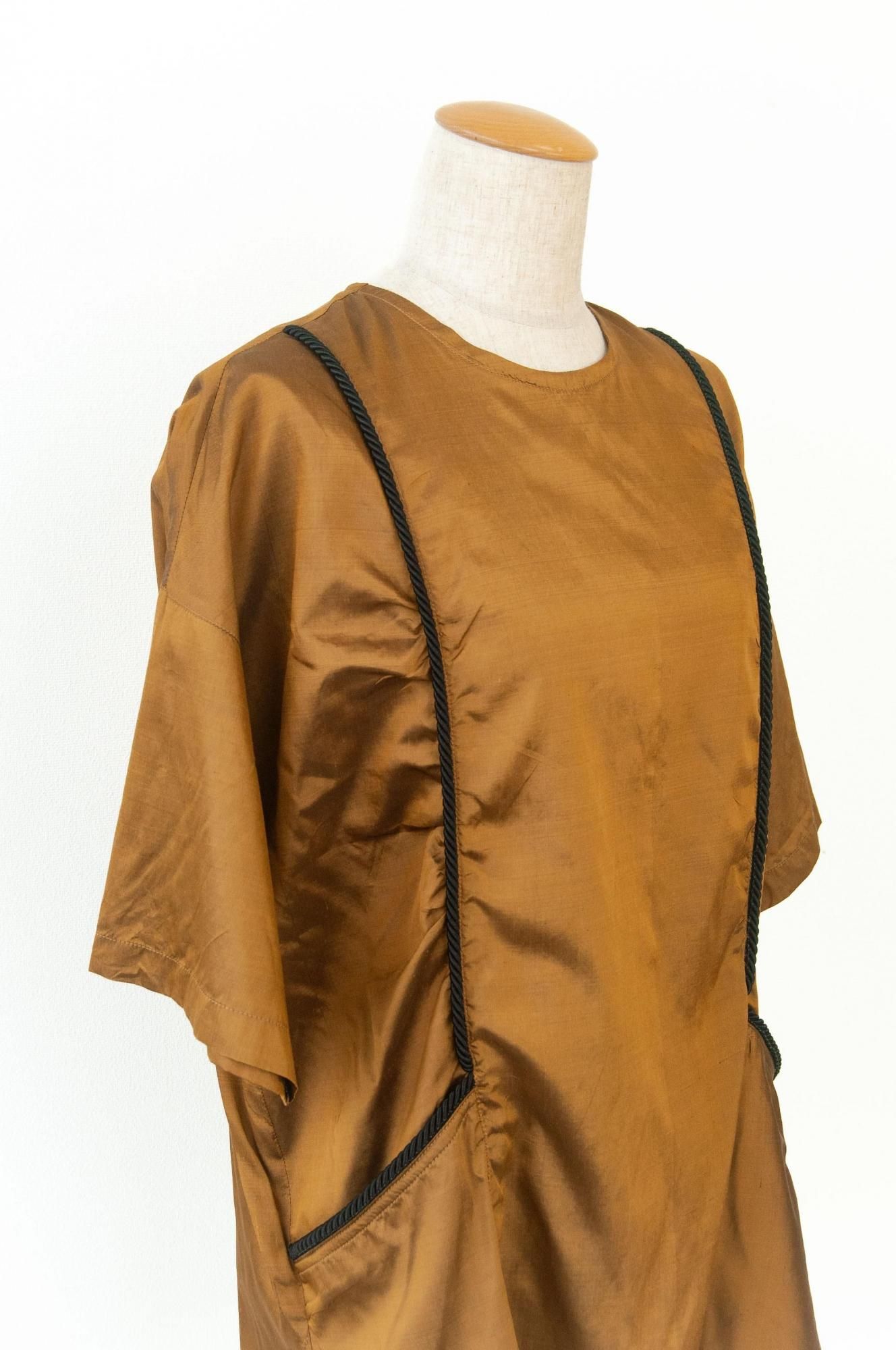胸元からポケットにかけて入っているギャザーによって、ニュアンスが生まれ、立体感があります。やや大きめの作りになっているので、ゆったりとした着心地。