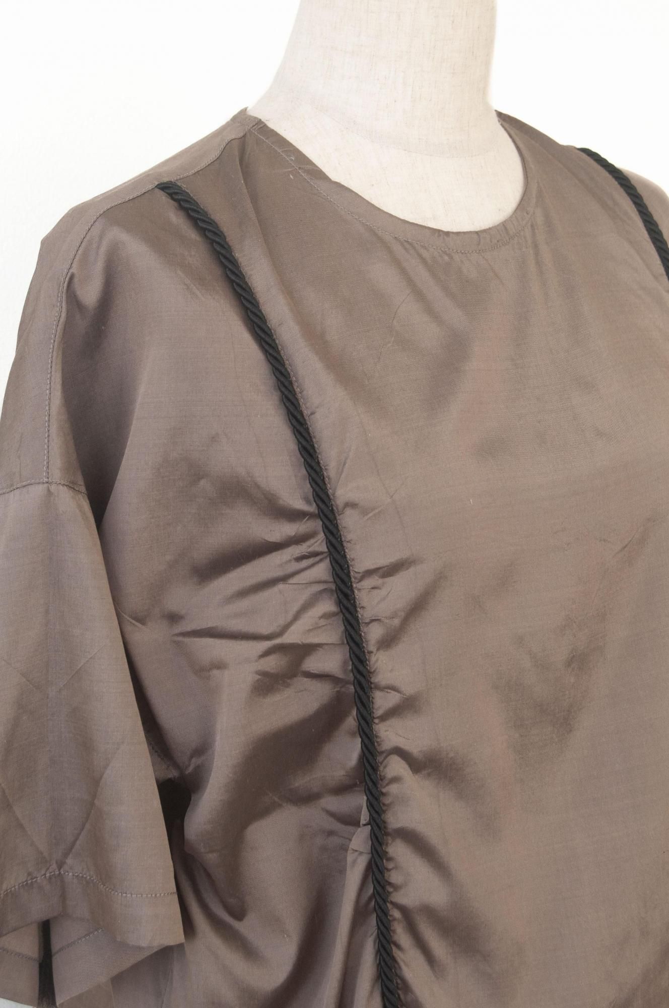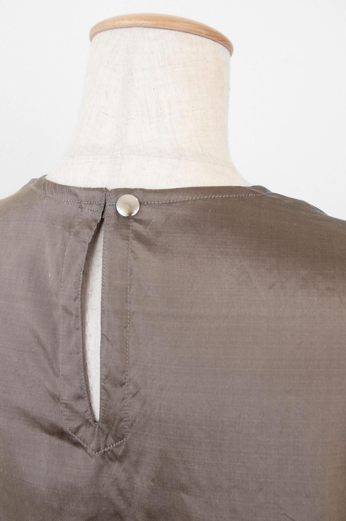 胸元からポケットにかけて入っているギャザーによって、ニュアンスが生まれ、立体感があります。やや大きめの作りになっているので、ゆったりとした着心地。