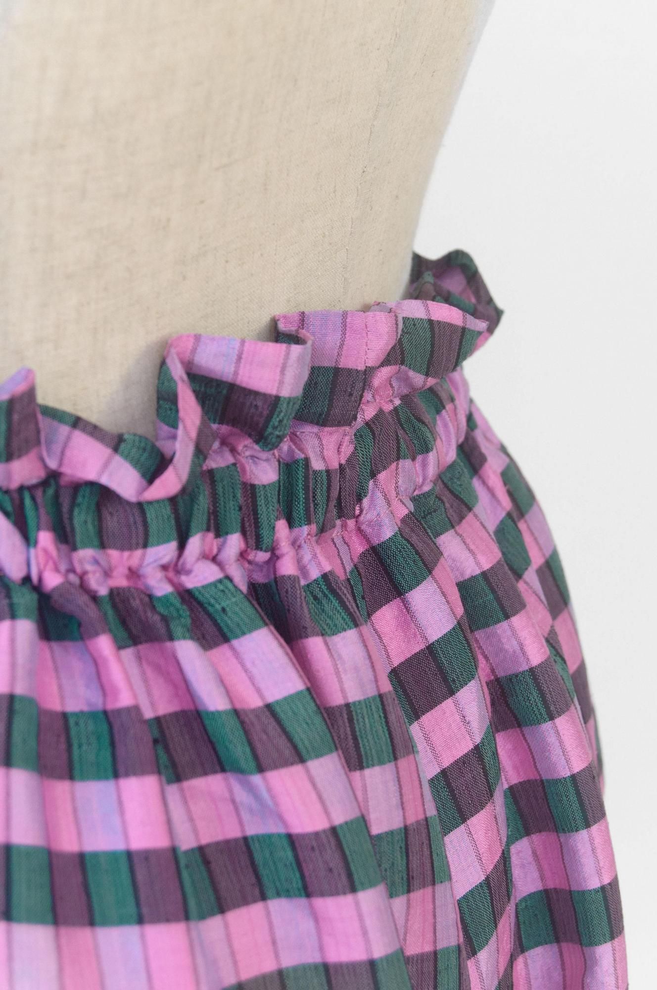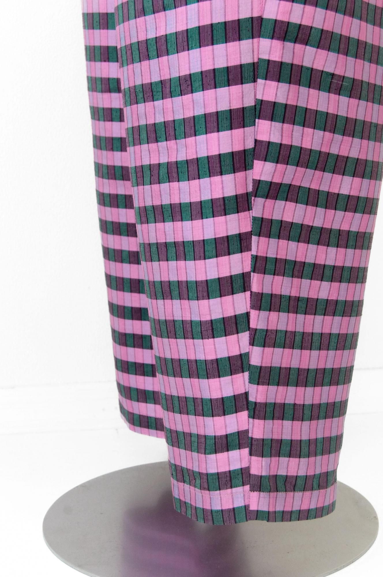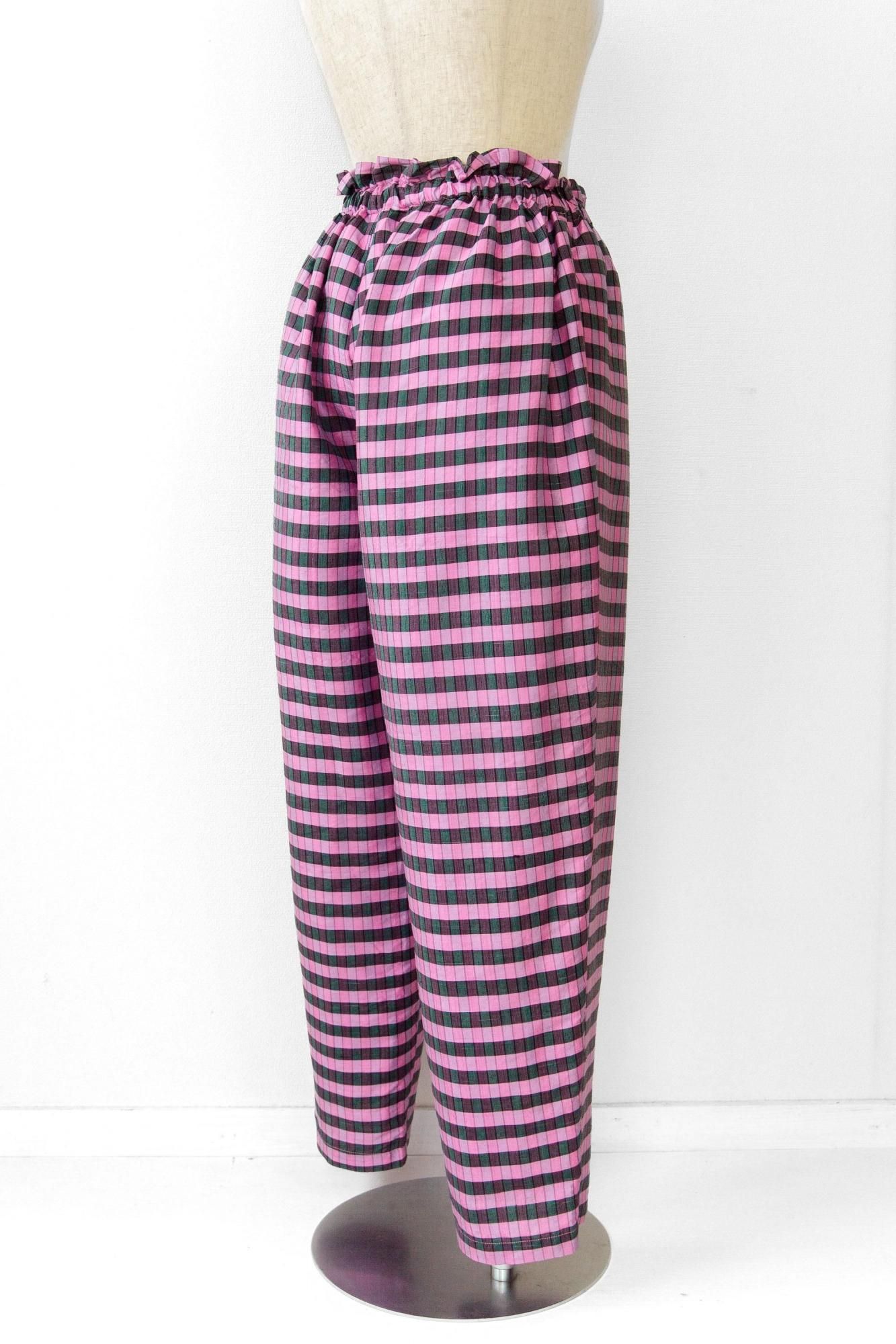 着心地の良さを追求したシルクパンツで、ウエストとヒップ周りはゆったりとした作り。とても快適で、普段着におすすめです。