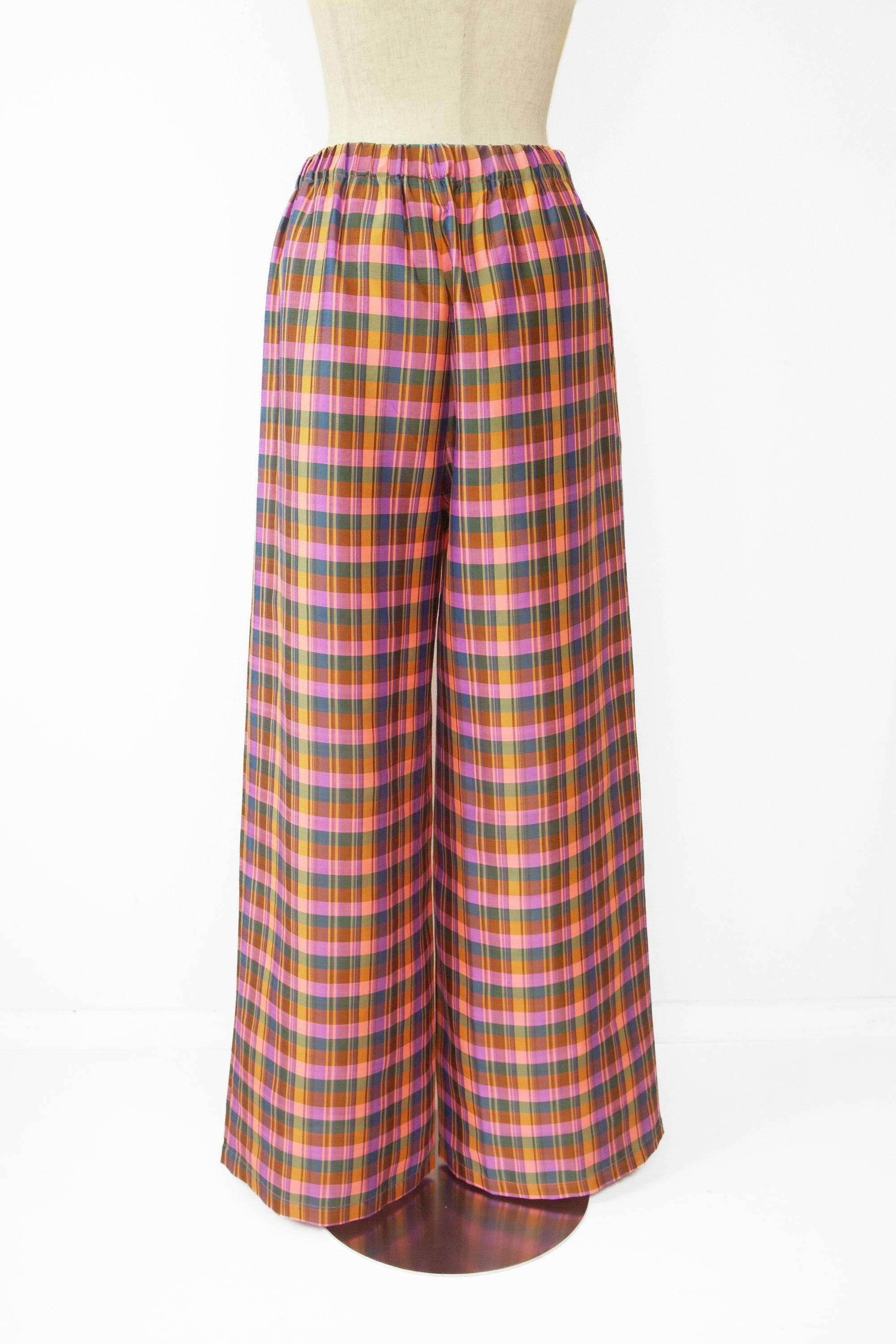 Wide Flow Pants / pink × blue check